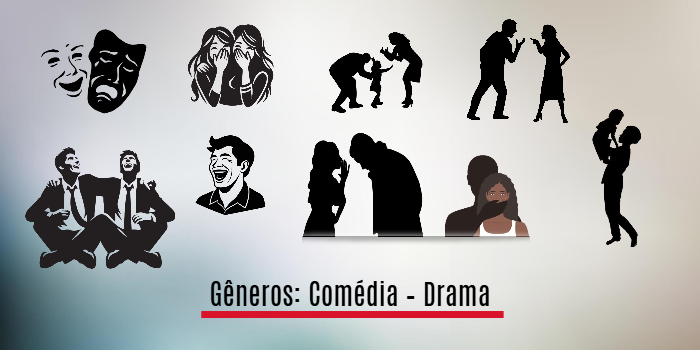 - Comédia:Foca em personagens comuns e situações cotidianas ou ridículas, com o objetivo de provocar o riso e criticar costumes sociais [2, 5].